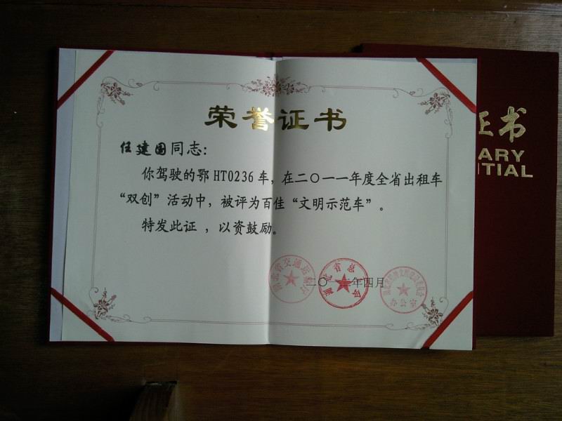 在創(chuàng)建和諧勞動關系活動中,荊門市公交出租汽車有限公司充分發(fā)揮和調動廣大駕駛員的勞動熱情和創(chuàng)造活力,獲得了一系列可喜成績。雷鋒車隊隊長曾凡華,2011年獲得省雙創(chuàng)“文明示范車”、荊門市出租行業(yè)“服務先鋒號”;2012年獲得荊門市“十佳的哥”榮譽稱號;前任隊長王建春獲得省交通廳“優(yōu)秀班組長”榮譽稱號;隊員任建國獲省交通廳“文明示范車”先進個人稱號。2013年6月,公司雷鋒車隊獲“全國工人先鋒號”榮譽。2014年2月28日,公司鄂HT1223雷鋒車駕駛員張華維獲省精神文明建設委員會辦公室、省交通運輸廳“雷鋒號”榮譽標牌。雷鋒車隊先后涌現出一批優(yōu)秀駕駛員,分別獲得了荊門出租汽車行業(yè)“服務先鋒號”、“十佳的哥的姐”等稱號及“荊門市道德模范提名獎”、“荊門市見義勇為先進集體”。