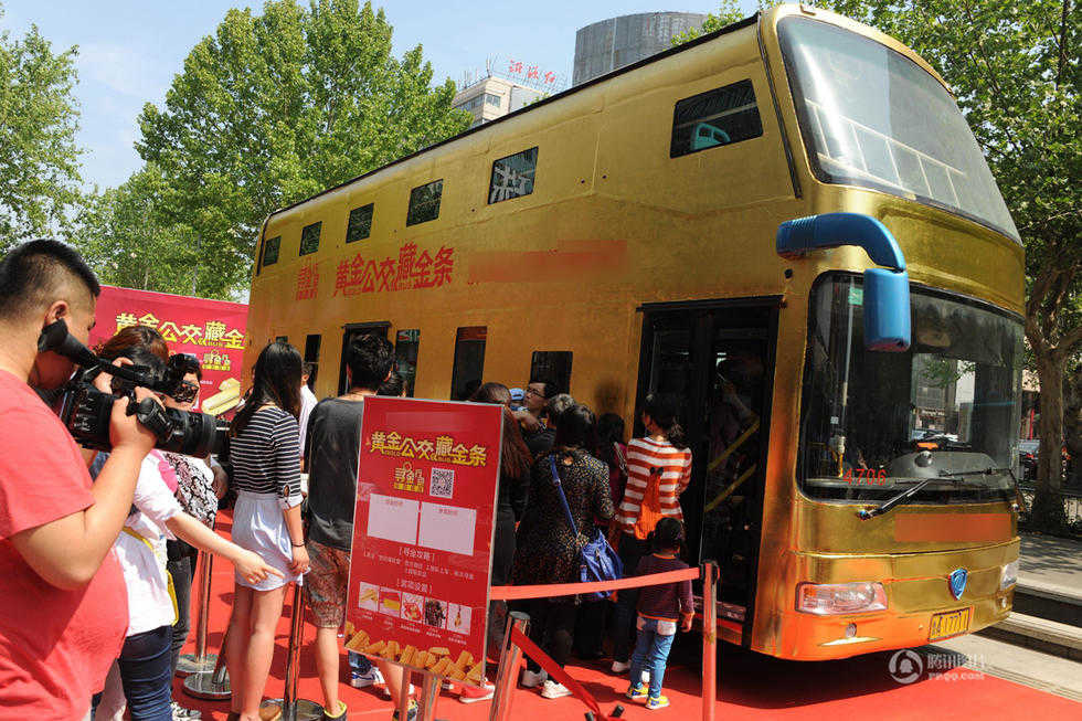 【濟(jì)南】"黃金公交車(chē)"亮相,車(chē)內(nèi)掛千件金飾