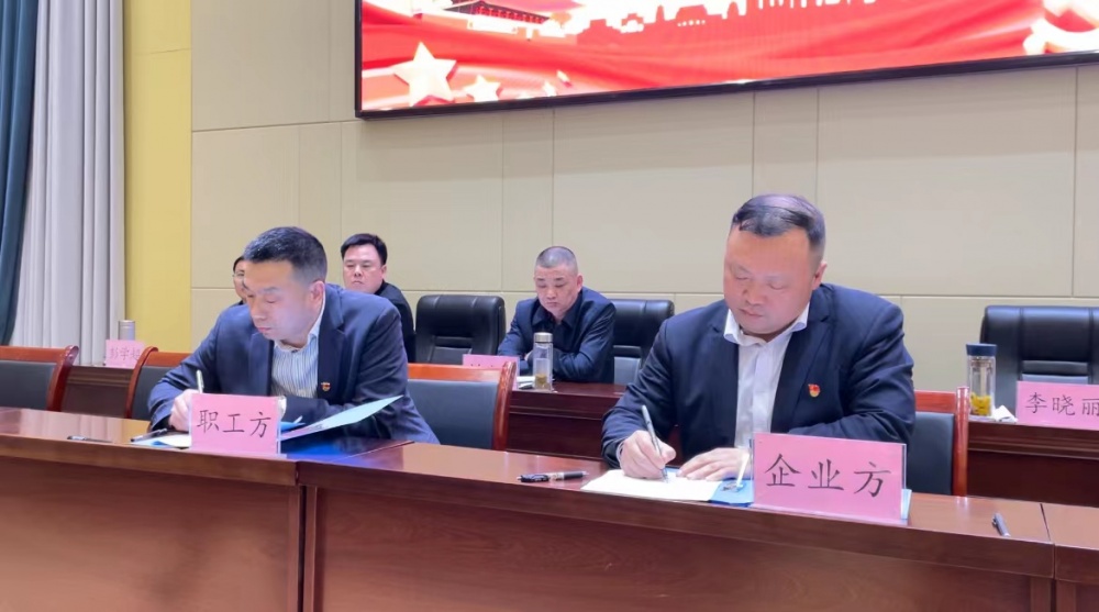 會上,企業(yè)方代表與職工方代表簽訂了《集體合同》。