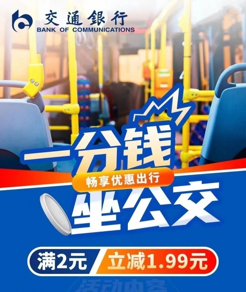 使用交通銀行手機(jī)APP出示付款碼乘車(chē)可享滿2元立減1.99元優(yōu)惠。活動(dòng)總名額10000個(gè),單用戶每日可享受1次優(yōu)惠,每月可享受10次優(yōu)惠,名額有限,先到先得。