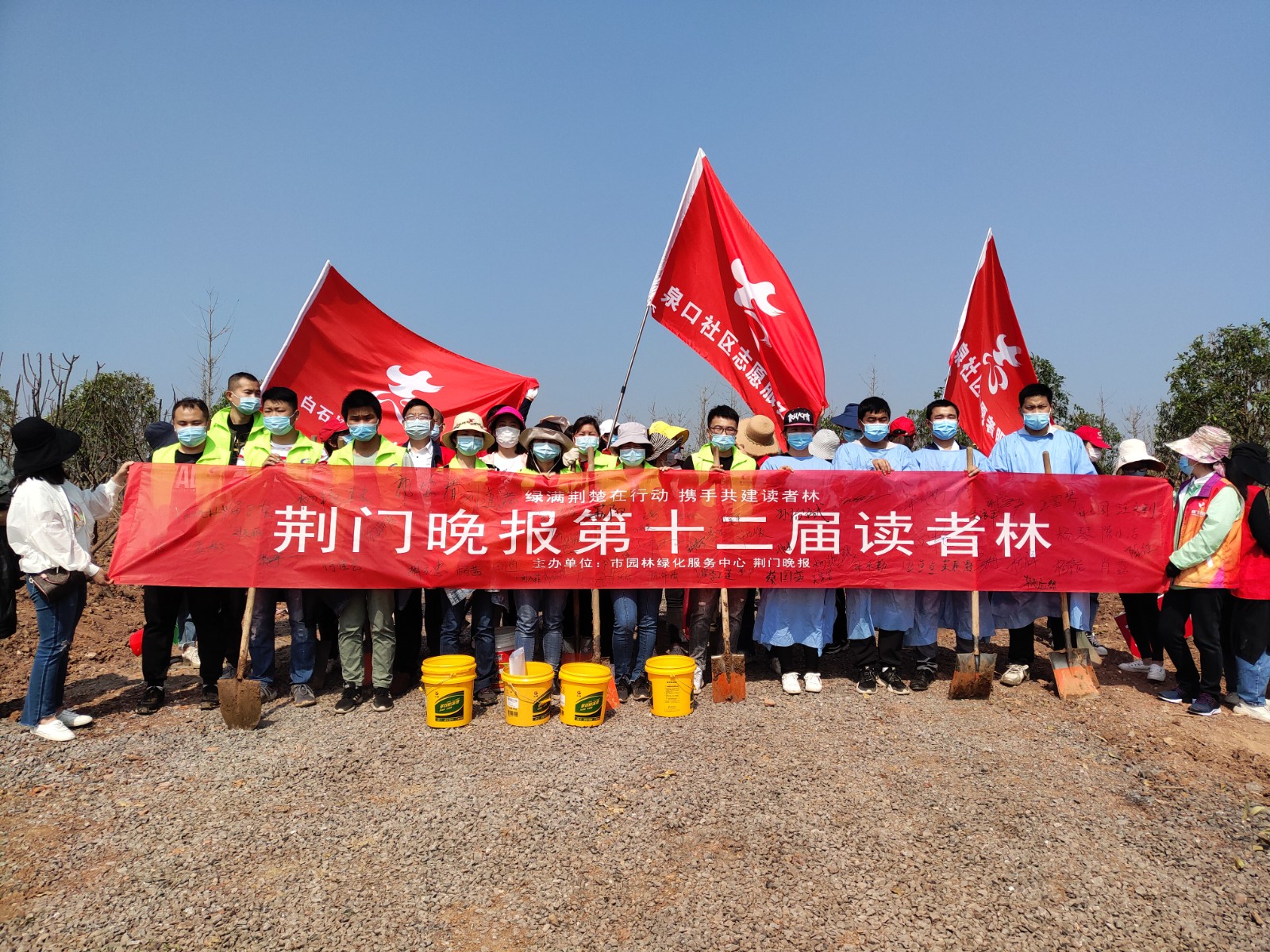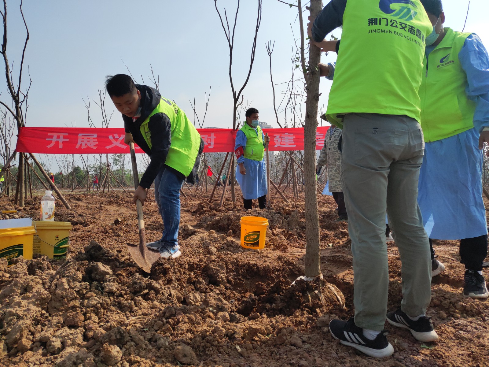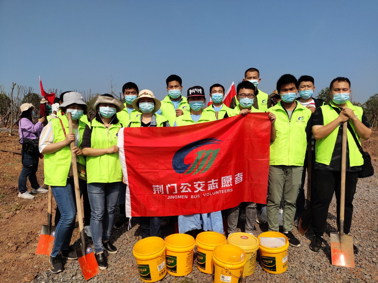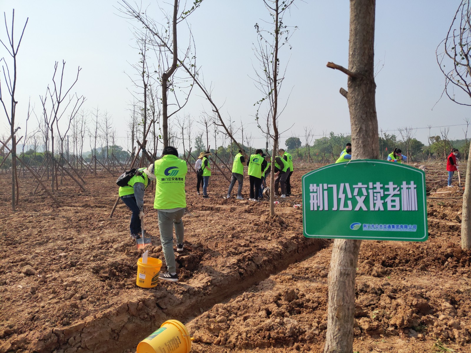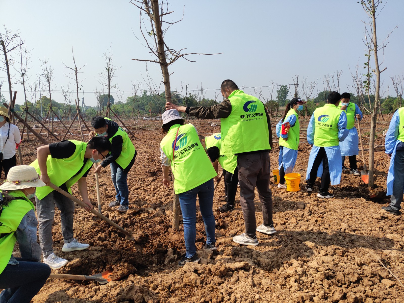 4月29日,荊門晚報第十二屆讀者林植樹活動開展,在漳河大道仙楊路植樹點,上百晚報讀者、志愿者隊伍參加了植樹活動。荊門公交集團14名公交志愿者積極參與活動,并調(diào)派兩輛公交車進行義務接送..