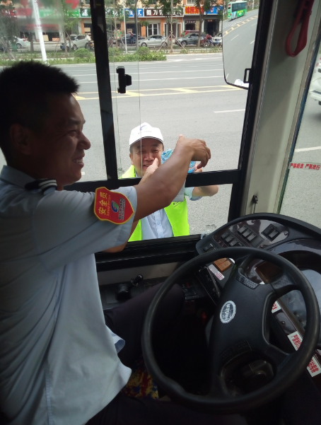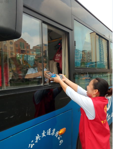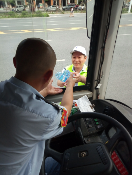 “目前還有小部分線路的公交車是沒有空調(diào)的,就算夏天再熱也得堅持,現(xiàn)在天這么熱,一天下來衣服都不知道要濕多少次。今天有他們給我們送來的礦泉水,讓我們司機(jī)在這夏日里體會到了一絲清涼,真的很感謝他們。有了他們的支持和理解,我們更要做好本職工作?!惫患瘓F(tuán)工作人員說。