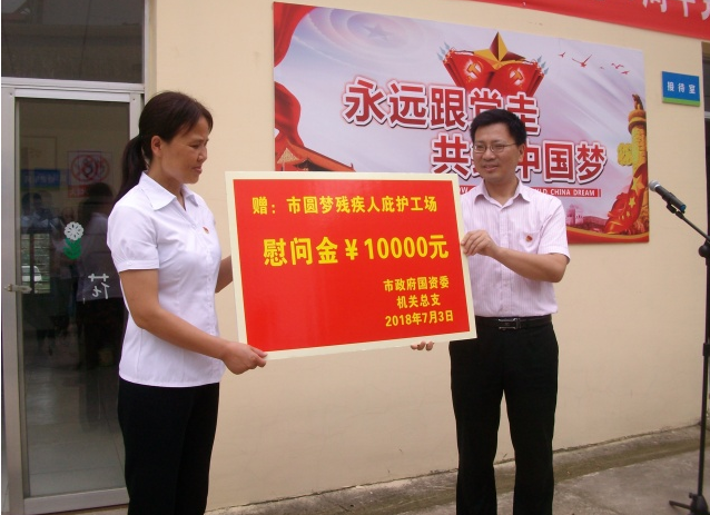 市政府國資委機(jī)關(guān)黨總支、市交投集團(tuán)機(jī)關(guān)黨支部、市公交集團(tuán)機(jī)關(guān)黨支部走進(jìn)市圓夢殘疾人庇護(hù)工場,開展“開展“念黨恩、獻(xiàn)愛心”紀(jì)念建黨97周年黨員主題黨日活