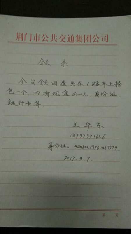 3月7日,一名小女孩在乘坐1路車時,在車上拾到一個皮包,并主動交給駕駛員,交由調度室發(fā)現內有現金6000余元及各種卡證。為這個拾金不昧的小女孩點贊,幫助失主尋回遺失財物!